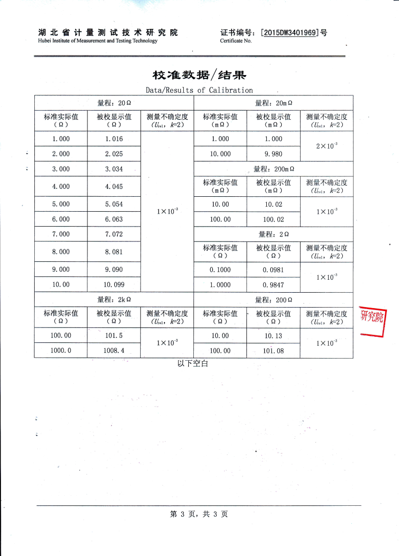 | 最小分辨率 | 0.1μΩ | |