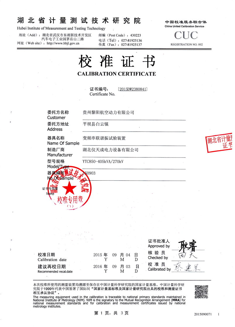 | 電抗器電感調節范圍: | 581H~9871H |