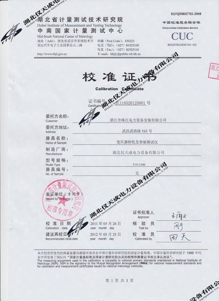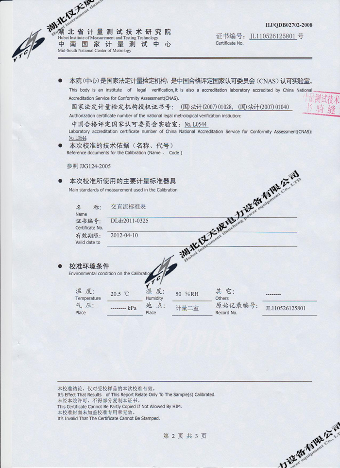 上一篇:YTC2000智能雙顯絕緣電阻測試儀的資質證書 下一篇:YTCZG-60kV/2mA直流高壓發生器的資質證書